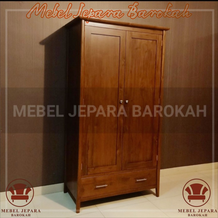 Lemari Pakaian Retro 2 Pintu Kayu Jati Minimalis Almari Kost Rak Pakaian Serbaguna